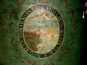 This beautiful drum, from The Arlington Historical Society archives, pictured here, is a lovely soft green with blue undertones. Wooden bands of a soft, sad…
