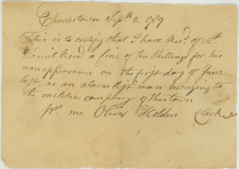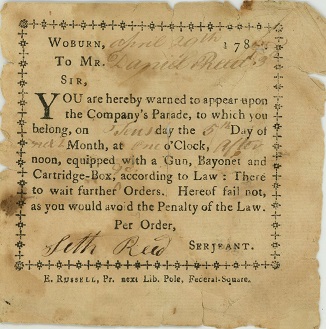 There were three companies of militia in Woburn in 1775: Captain Samuel Belknap’s, Jesse Wyman’s and Joshua Walker’s. In 1775, Daniel served as a private in Captain Samuel Belknap’s company.