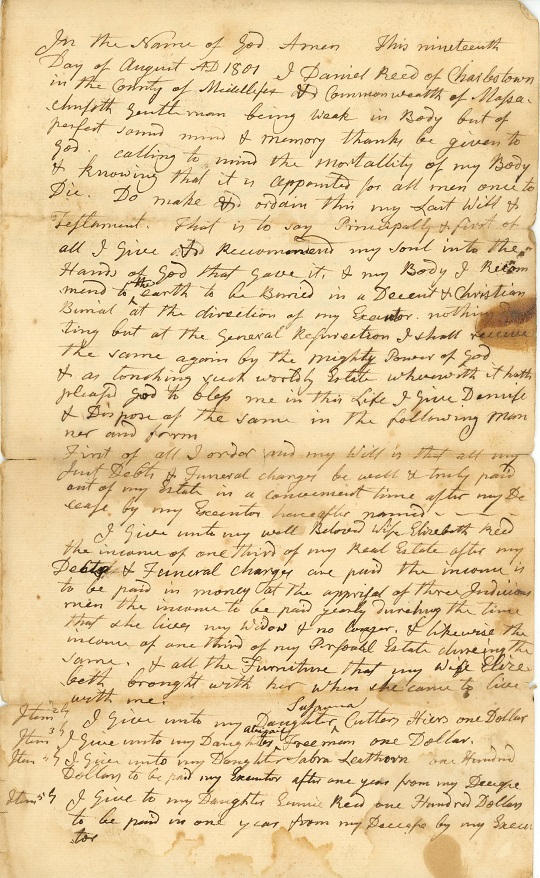 Below is a gallery of documents from the Fowle-Reed-Wyman collection relating to Daniel Reed: