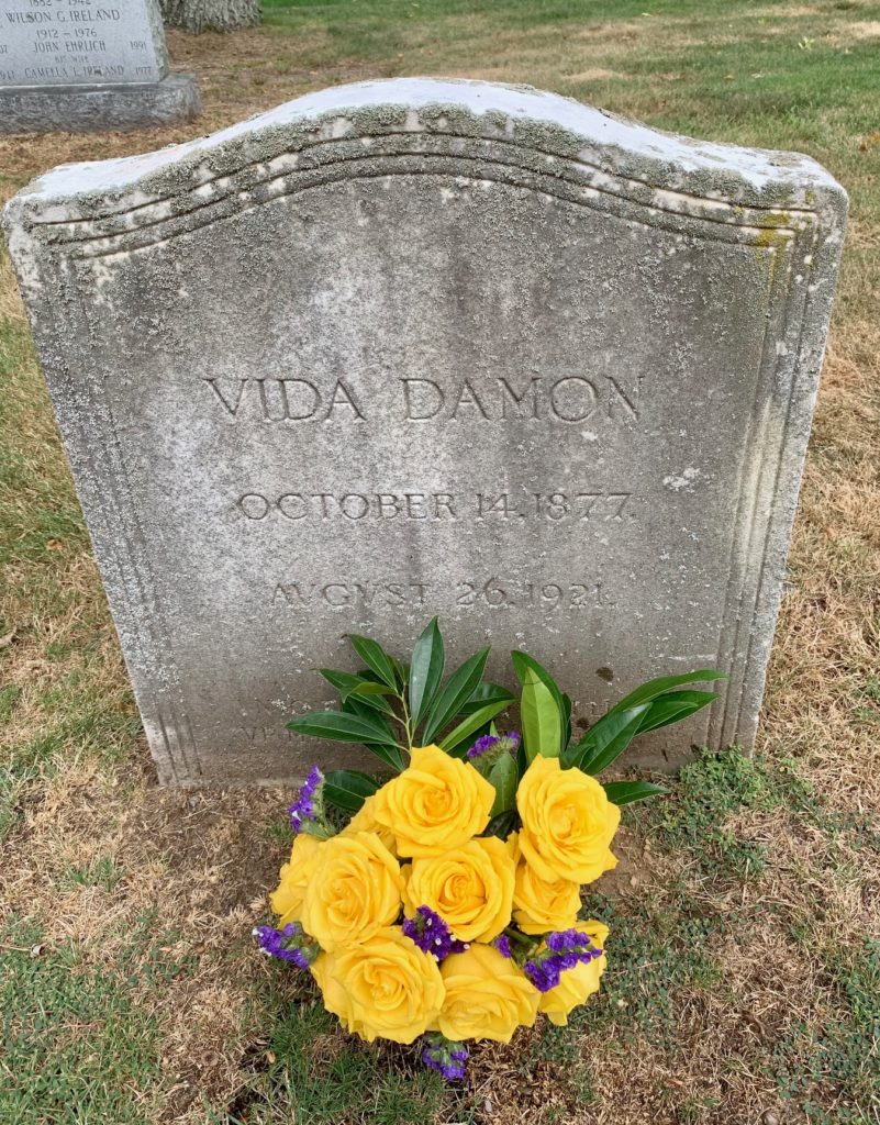 Vida was the youngest of four Damon children surviving into adulthood. She lived with her widowed mother, Ella G. Damon, and her bachelor brother, Frederick W. Damon, at 275 Broadway (a home still standing). The Damon Park subdivision created in the 1950s is located on what was the large rear garden of the Damon home, and is bounded by Warren and Webster streets.